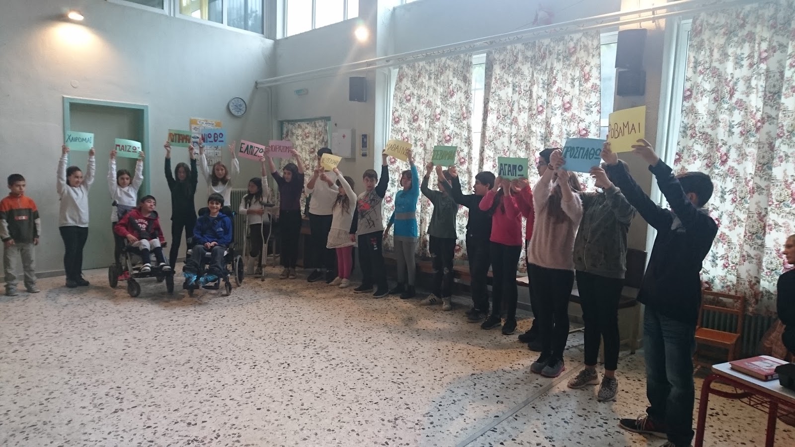 Ιδαίτερα πετυχημένη ήταν η μουσική θεατρική παράσταση που πραγματοποιήσαμε σε συνεργασία με το 5ο ΔΣ Καβάλας με αφορμή την Παγκόσμια Ημέρα γαι την Αναπηρία. Οι μαθητές του σχολείου μας και πολύ καλοί μουσικοί, Πολύκαρπος και Φίλιππος, όπως και όλα τα παιδιά που συμμετείχαν έδωσαν τον καλύτερο εαυτό τους και δίκαια απέσπασαν το ενθουσιώδες χειροκρότημα όλων όσοι παρακολούθησαν. Τα παιδιά απέδειξαν στην πράξη πως η διαφορετικότητα ενώνει παρά χωρίζει.