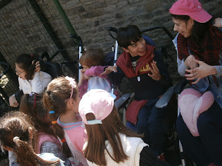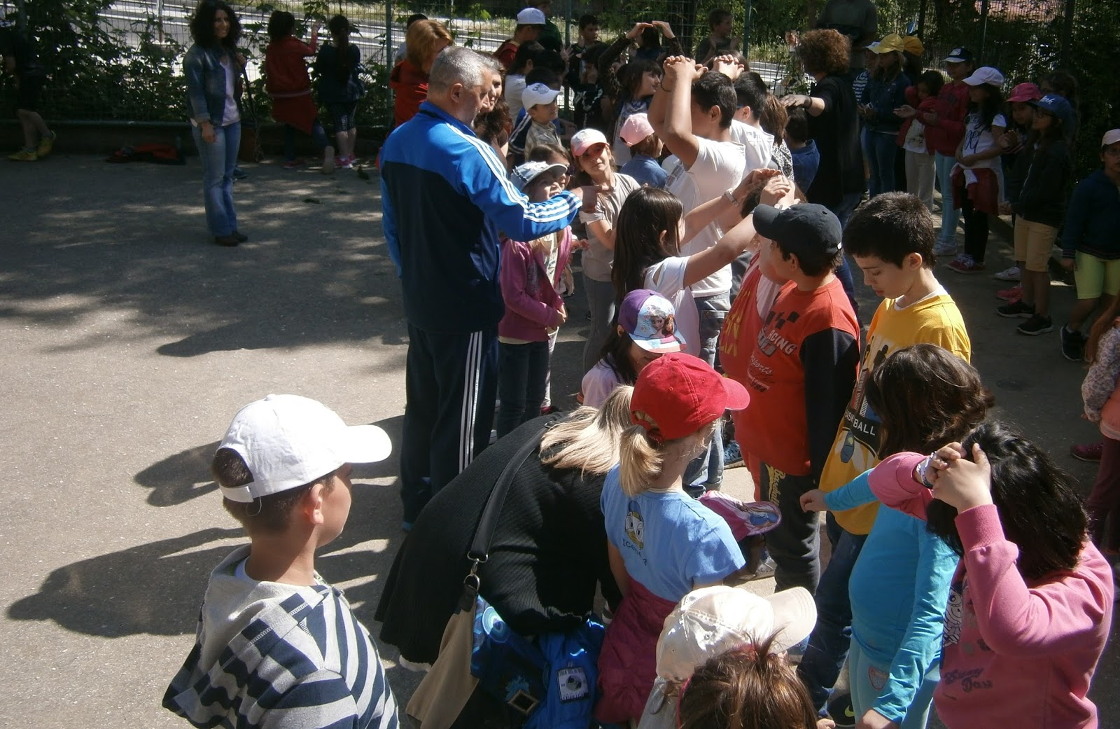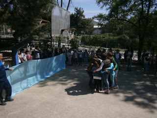 Τρία τμήματα με τους εκπαιδευτικούς τους από το Δ.Σ. του Αμυγδαλεώνα, επισκέφθηκαν το σχολείο μας. Οι μαθητές τους και οι μαθητές μας είχαν την ευκαιρία να γνωριστούν και να αλληλεπιδράσουν μέσα από μουσικοκινητικές δραστηριότητες και δραματοποιημένα παιχνίδια. Τα παιδιά ενώθηκαν αβίαστα σε μια μεγάλη αγκαλιά.
