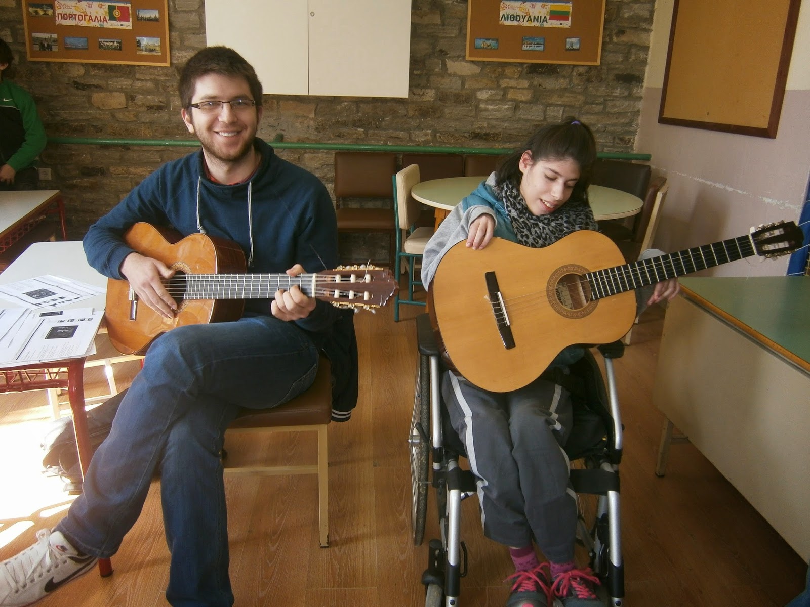 Στο πλαίσιο του προγράμματος ” Μεγάλοι Έλληνες Συνθέτες του 20ου αιώνα” πραγματοποιήσαμε στο σχολείο μια μουσική εκδήλωση. Με τη βοήθεια του μουσικού Δημήτρη Τρομπούκη, ο οποίος συνόδευσε με την κιθάρα του και τη φωνή του τα παιδιά μας, ακούσαμε και περιπλανηθήκαμε στη μουσική του Μάνου, του Μίκη, του Νιόνιου και άλλων μεγάλων συνθετών. Οι μαθητές μας έγιναν για λίγο τραγουδιστές και οργανοπαίχτες, συμμετείχαν με ποικιλία δραστηριοτήτων και το απόλαυσε η ψυχή τους!