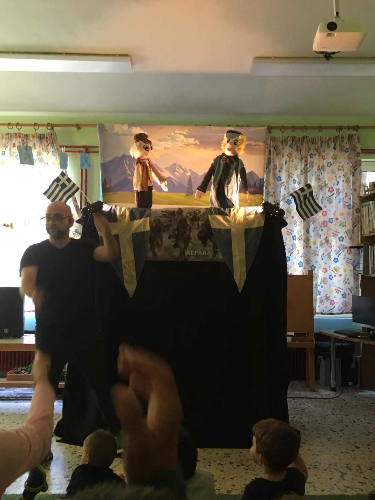 Με αφορμή την επέτειο της εθνικής εορτής του “ΟΧΙ”, κάποιοι μαθητές του σχολείου μαζί με μαθητές του Ειδικού Νηπιαγωγείου και του 20ου Νηπιαγωγείου, παρακολούθησαν το εκπαιδευτικό κουκλοθέατρο “Το έπος του ΄40” από την παιδική σκηνή “Ονειροβάτες”. Η παράσταση ήταν διαδραστική καθώς οι ηθοποιοί εμψύχωναν τα παιδιά να συμμετέχουν τραγουδώντας. Οι μαθητές διασκέδασαν και απόλαυσαν τη διαφορετική αυτή παράσταση.